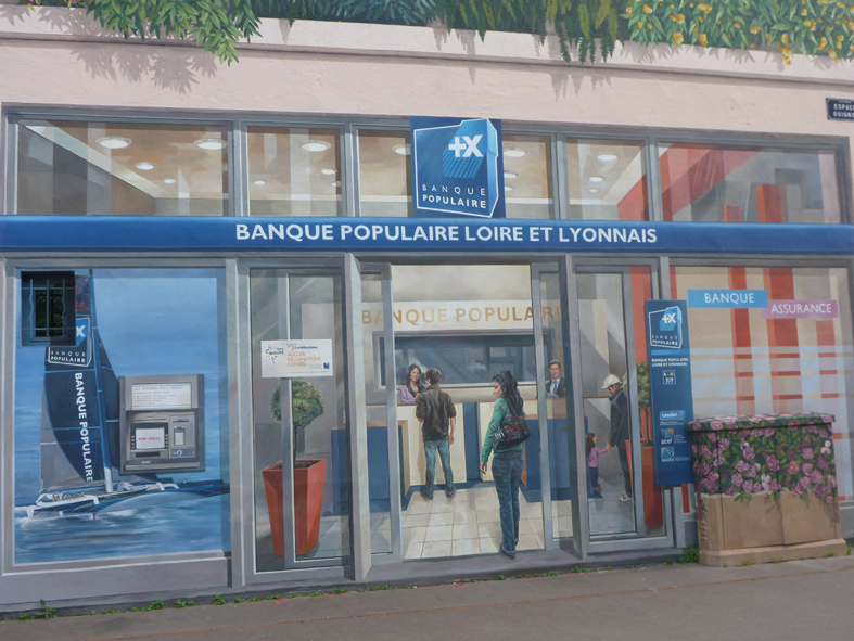 Lyon has several building facades completely covered by incredible murals, this is the most striking. Look closely at the bank front mural below, bottom right on whole mural.